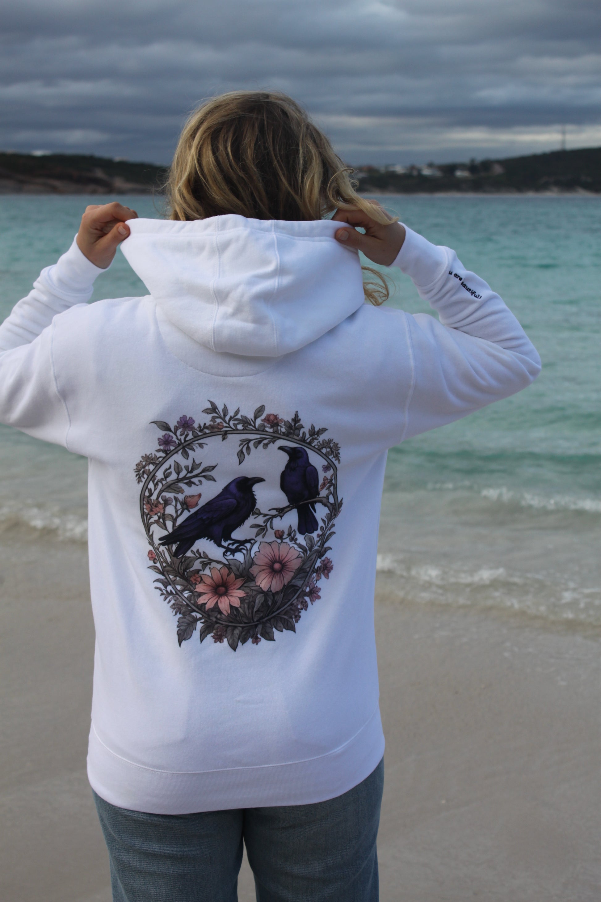Like a black bird, she carries ancient strength and silent loyalty. Fierce in love. Rooted in truth. Soft where it matters, unshakeable where it counts. This hoodie is for the ones who guard others hearts, even when theirs are breaking.